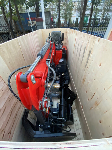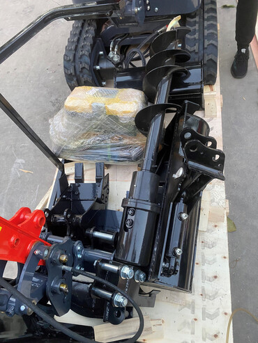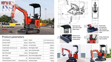 Мини экскаватор HY10 оснащен поворотным механизмом стрелы и комплектом навесного оборудования